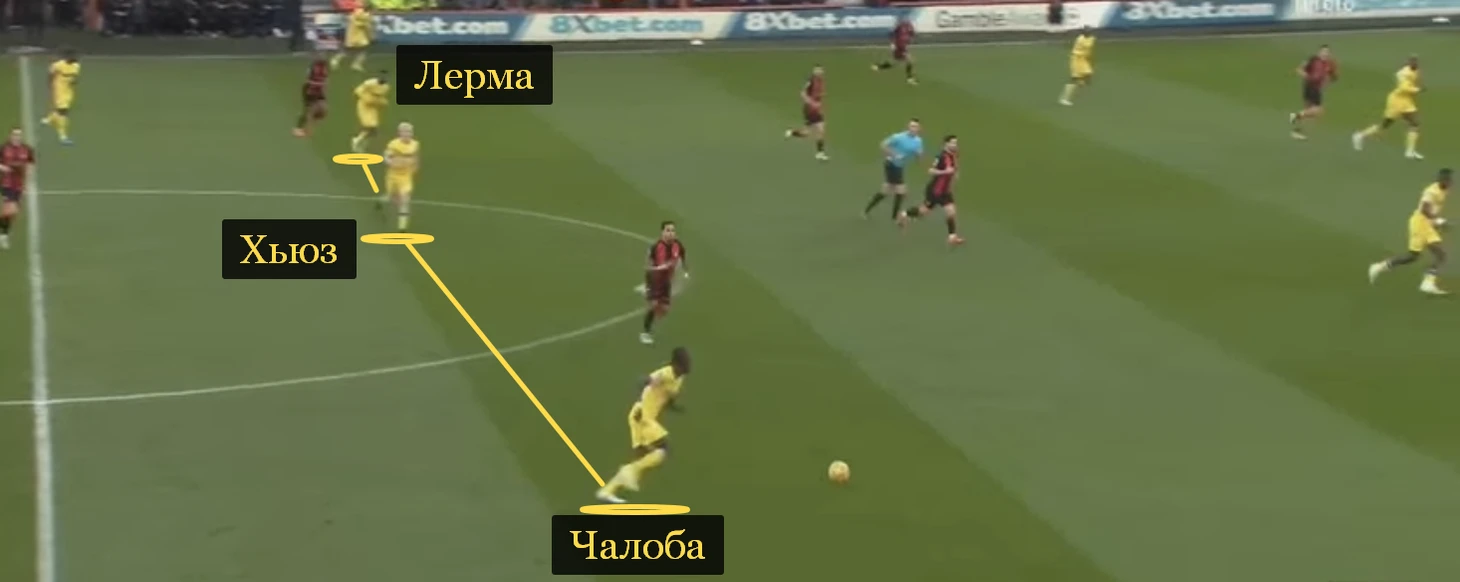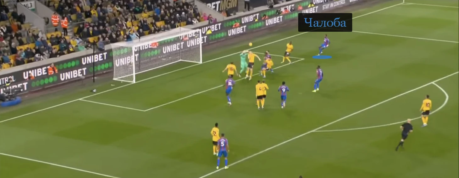 Как итог, Чалоба – 5-й среди основных игроков «Пэлас» (критерий – 900 и больше минут в АПЛ) по пасам в финальную треть (2,29 в среднем за 90 минут) и с продвижением на 9+ метров (2,88).