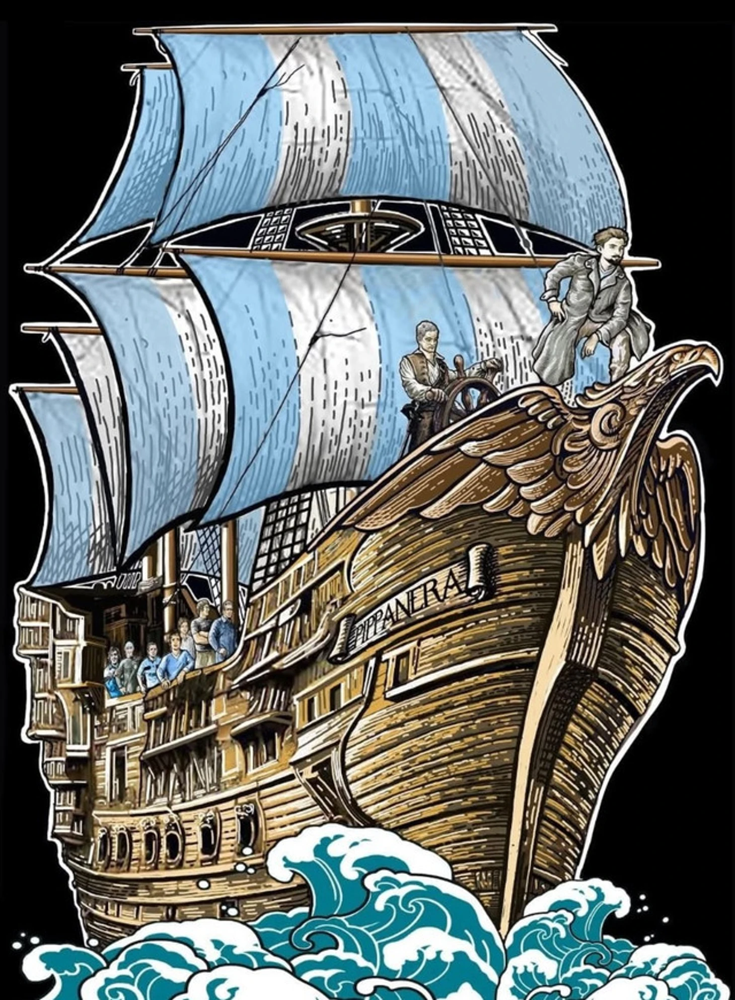 Также на борту корабля можно рассмотреть и его название — «Чёрная труба». Это название тоже взято не с потолка — так называлось ветхое сооружение, расположенное на берегу реки Тибр. Оно служило штабом для ассоциации пловцов, которые в последствии будут среди тех, кто создаст «Лацио» в 1900 году. Свой клуб юные спортсмены создали по той причине, что у них не было средств для вступления в уже имеющиеся престижные спортивные сообщества города.