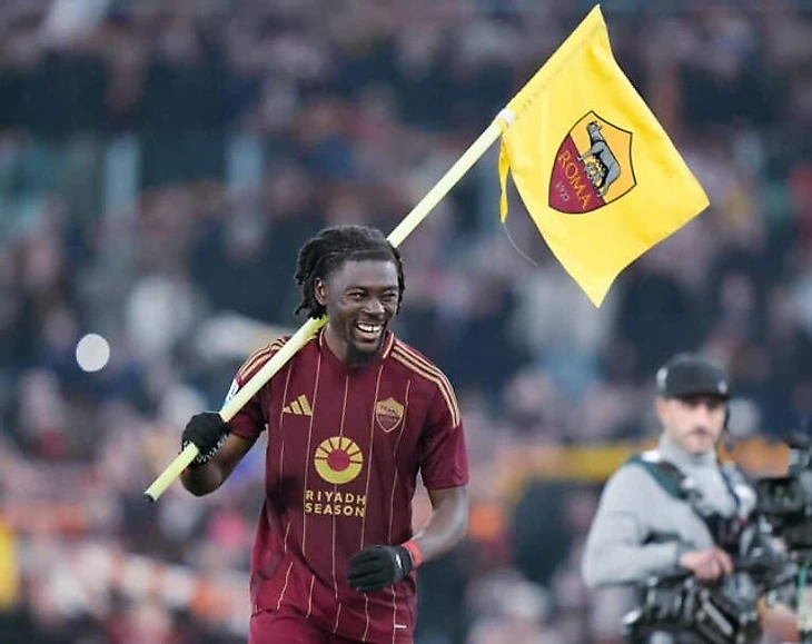 Ману Коне празднует победу в римском дерби.