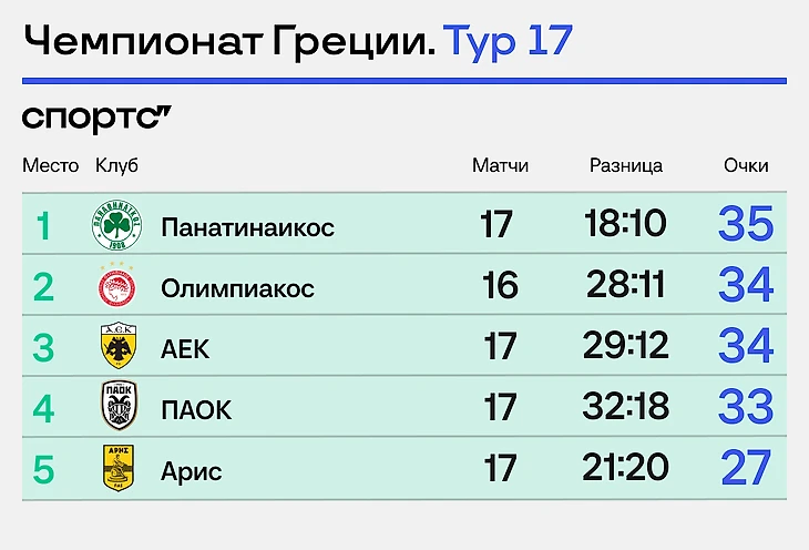 Отрыв топ-4 от остальных уверенный, поэтому наверняка именно они весной сыграют в чемпионском плей-офф – в Греции чемпион определяется по смешанной системе. После гладкого чемпионата из 26 туров раунд из шести дополнительных: сыграют по два раза с каждым из трех соперников.