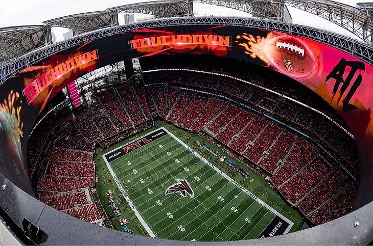 «Mercedes-Benz Stadium» - домашний стадион ФК «Атланта», расположен в Атланте, штат Джорджия. Думаю, многие любители футбола видели этот стадион, когда Алексей Миранчук перешел в «Атланту», и, со слов журналистов «был поражен стадионом», хоть сам Алексей в интервью позже рассказал, что все сильно преувеличивают. Но в целом, арена является одной из лучших в мире, на ней выступают ФК «Атланта», команда по американскому футболу «Атланта Фэлконс», а также проходят соревнования студенческого спорта. На футбольных матчах максимальная вместимость арены более 73 000 человек. Сам стадион новый, открыт в 2017 году. На стадионе в групповом этапе сыграют «Челси», «Ювентус».