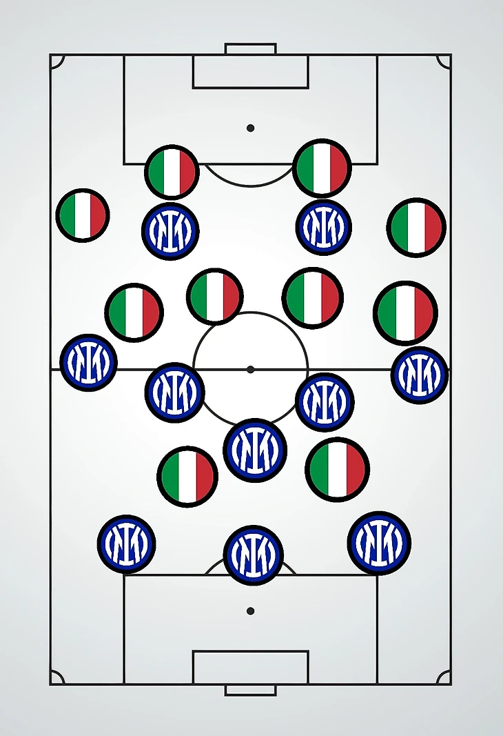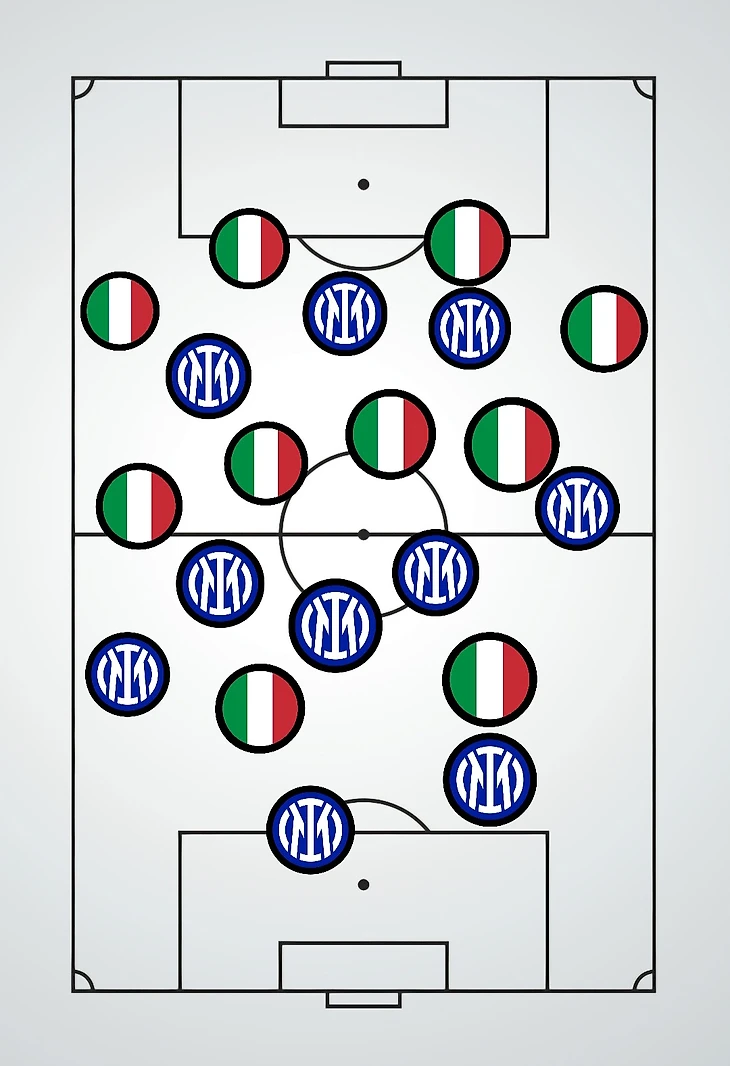 Мхитарян, способный бегать по 90 минут, при этом давать очень умное движение и хорошее качество паса. Димарко, у которого по ощущениям под руководством Индзаги вообще нет позиции, ведь каждый сезон он эволюционирует, пройдя путь от защитника в тройке и левого латераля до инвестированного фуллбэка. Павар, пришедший в прошлом сезоне и сразу добавивший в качестве подключений. Бастони, который вообще является одним из уникальных футболистов, способных исполнять невозможную для других роль, а именно быть одновременно защитником в тройке и одним из нападающих, отдавать длинные передачи и самостоятельно продвигать мяч на рывках. А это я ещё не говорю о Барелле, который, наверное, способен играть на всех позициях в центре поля, в любой роли и делать это эффективно. Этакий аналог Федерико Вальверде из «Реала», только с другим функционалом, но общей универсальностью.