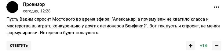 Мостовой ответил на неприятный вопрос из комментов. И вспомнил стычки с португальцами из «Бенфики»