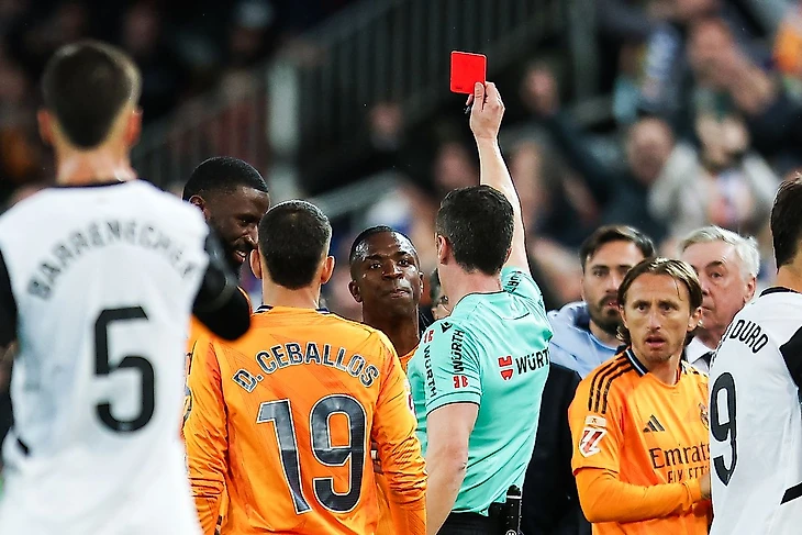 «Мадрид» продолжает бороться с испанскими арбитрами. В матче перенесенного 12-го тура против «Валенсии» Винисиус получил красную карточку за нападении на вратаря соперника, позже его дисквалифицировали на два матча.