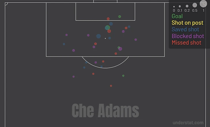 Отчасти на это влияет слабость «быков» в позиционках (снаряд редко доводят до нападающих), но и сам Адамс стилистически не тяготеет к бездумному стоянию у чужих ворот. Он регулярно опускается, пашет в центре и играет в стеночку с ЦПЗ.
