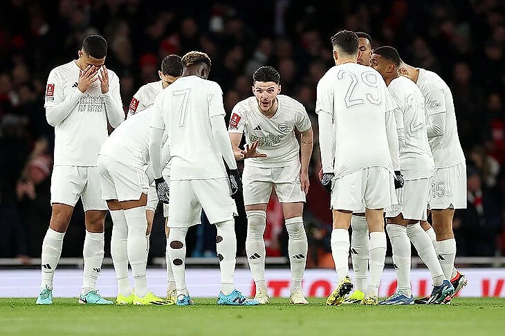Но, что касается успешности и результата данной формы, оставляет желать лучшего. Так сложилось, что команда выступает в этом комплекте в рамках третьего раунда Кубка Англии. С 2022 года «канониры» победили лишь однажды на этой стадии. Первая неудача произошла с «Ноттингемом», когда коллектив Артеты уступил на выезде с минимальным счётом. Тогда творилась настоящая вакханалия. Тавареша заменили из-за плохой игры ещё в первом тайме, а команда за весь матч не нанесла ни одного удара в створ. Один из худших матчей сезона, которые ещё и снимал Amazon. В нём Микель Артета произнёс культовую фразу по итогу матча: «F*cking standards» («Грёбанные стандарты»; имелась ввиду необходимость побеждать в любом матче и проходить такие команды).
