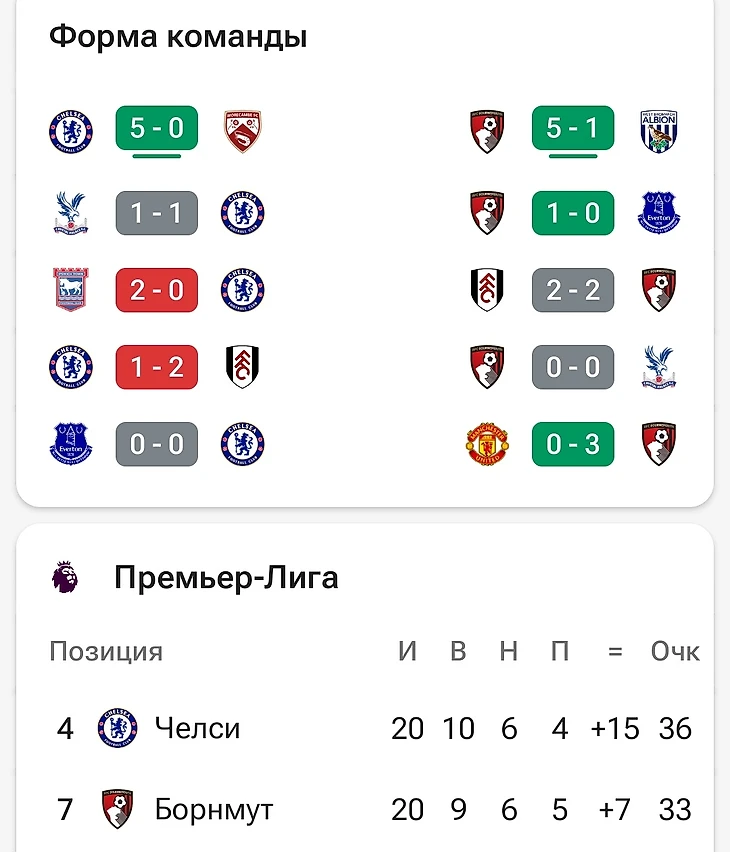 🔵 Мой прогноз: Я не могу сказать, что «Челси» является фаворитом матча, даже учитывая травмы «Борнмута». «Синие» стараются преодолеть кризис – без побед в последних 4-ёх матчах АПЛ. «Борнмут» наоборот сейчас на ходу. Радует, что игра пройдёт на «Бридже».