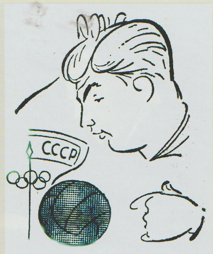 Шарж на В. Соловьёва – тренера олимпийской сборной СССР.