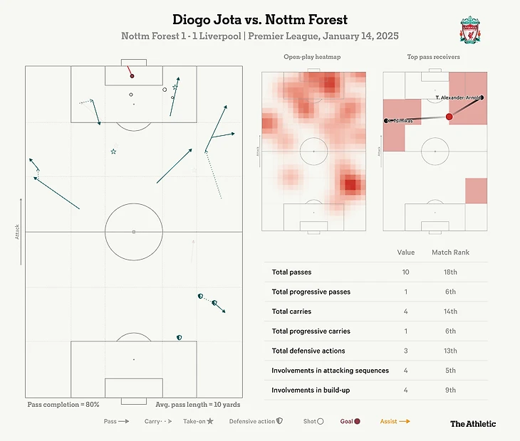 Всего 25 секунд и одно касание потребовалось Жоте, чтобы показать больше качества, чем все остальные нападающие «Ливерпуля» за первый час игры.