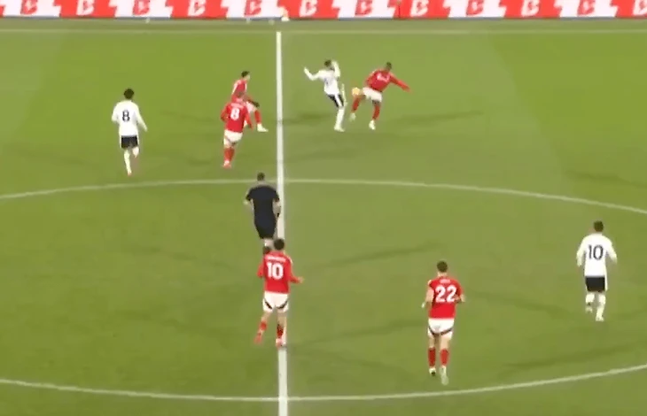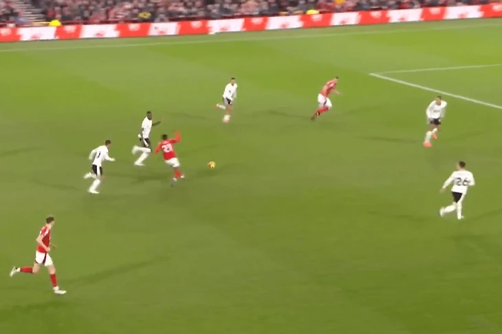 Каллум Хадсон-Одои проскочил мимо слабого сопротивления Салаха и помчался вперед в одном из первых выходов «Форест» в атаку.
