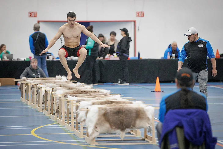 Некоторые дисциплины похожи на привычные нам занятия по ОФП. Например, прыжки через санки. На дистанции устанавливают десять небольших саней, между ними – меньше полуметра. Спортсмен перепрыгивает каждые санки, после десятых – разворачивается и продолжает движение. Задача – перепрыгнуть как можно больше саней, не упав и не коснувшись их. Иногда ошибку приходится ждать ну ооочень долго. Например, в 2006-м участник арктических игр перепрыгнул 830 саней.