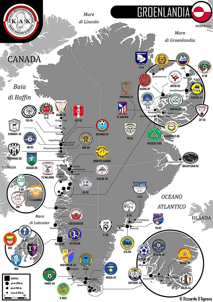 И все же большинство гренландских футболистов редко покидают остров ради большой карьеры. Местный чемпионат длится всего неделю – в прошлом году шел с 3 по 10 августа. За это время 7 команд (из 10 приглашенных три снялись), поделенные на две группы, сыграли 15 матчей, в том числе мини-плей-офф. Все встречи прошли на одной арене в поселке Кекертарсуак, где проживают меньше 1000 человек. Раньше турнир включал региональные отборы, но сейчас не до жиру – берут всех, кто может доехать. В 2024-м победил Б67 из Нуука, доминирующий в гренландском футболе с середины 1990-х. Никакие еврокубки команде не светят. Гренландия так и не стала членом УЕФА или ФИФА. В Кубке Дании, через который можно было бы квалифицироваться в Лигу Европы, гренландские клубы не играют.