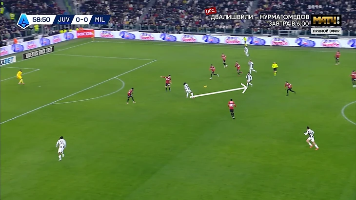 Вторая 45-минутка в первую очередь, конечно, началась с замены от Мотты: Йылдыза сменил Веа, и сначала эта рокировка показалась крайне неоднозначной, ведь Кенан, как обычно, был одним из самых активных на поле, и его момент на 36-й минуте, пожалуй, стал самым опасным у «бьянконери» в первой половине, тем более это была замена по позиции, и она не принесла никакой кардинально новой атакующей идеи: