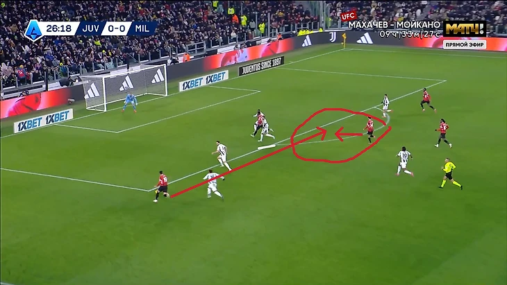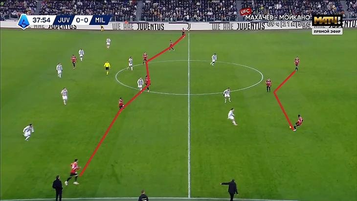 И ведь это были отнюдь не 2 оторванные от общей картины ситуации, а реальный план Консейсау, как минимум на первых минутах (потом Исмаэль все же стал опускаться ниже). Еще нельзя не отметить высокий прессинг «россонери», вернее как прессинг...