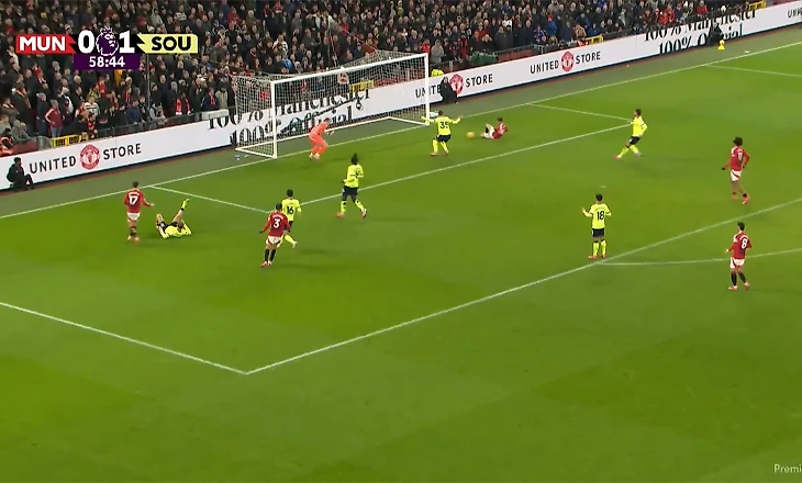 С «Саутгемптоном» Антони вышел в начале второго тайма. Рубен Аморим рискованно снял Кобби Майну и выпустил бразильца на позицию правой десятки.