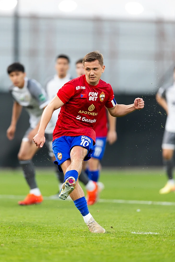 ЦСКА начал очень резво и уже сразу голом мог отметиться Глебов, однако вратарь соперников спас свою команду. Через несколько минут после удара игрока ОКМК мяч попал в руку Абдулкадырова, из-за чего был назначен 11-метровый, который реализовал Гиёсов. Затем армейцы усилили давление: сначала после дальнего удара Бистровича мяч попал в перекладину, а следом Глебов спокойно реализовал свой момент и сравнял счет. Красно-синие не переставали атаковать и Жемалетдинов смог заработать пенальти, который уверенно реализовал Обляков. Кроме того, в одном из моментов Рифат получил мяч и красиво развернулся, но пробил во вратаря. Узбеки активизировались перед перерывом и напрягали Торопа, но Влад спасал ЦСКА.