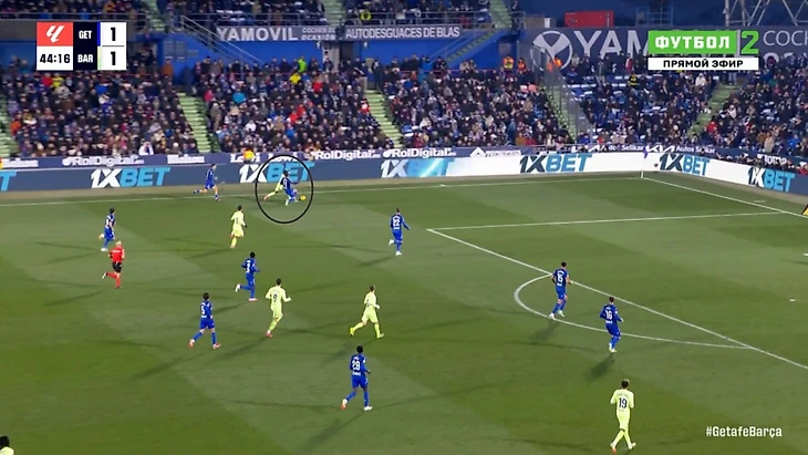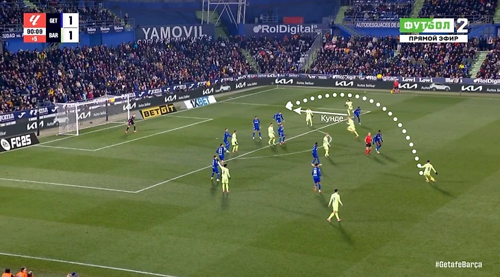 Другой инструмент – рывки Кунде вторым темпом. Только Рафинья (12) обогнал Жюля (9) по действиям в штрафной. Кроме гола «Хетафе» несколько раз проспал его движение и чуть не упустил ничью.