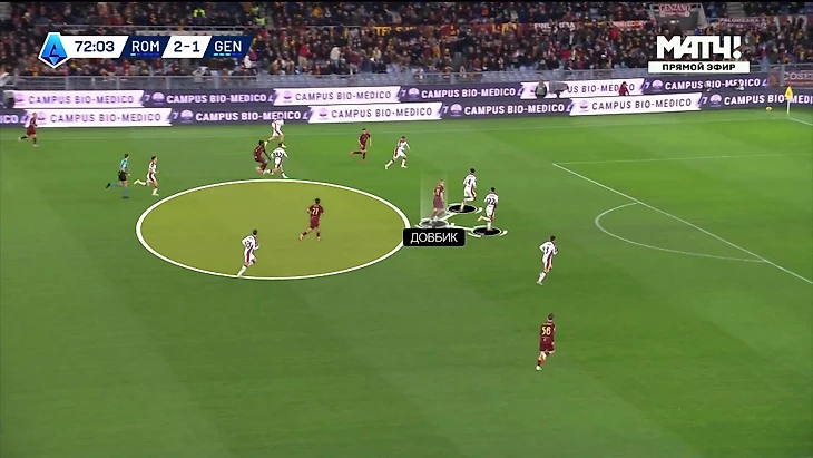 Классические формулы фэнтези недооценивают вклад Артема в успех команды. В матче против «Дженоа» он забил, но основная польза была в другом. Довбик так явно рвет оппонентов 1-в-1 за счет мощи и физики, что с ним в прямом смысле весь матч тусовалось два центральных защитника: