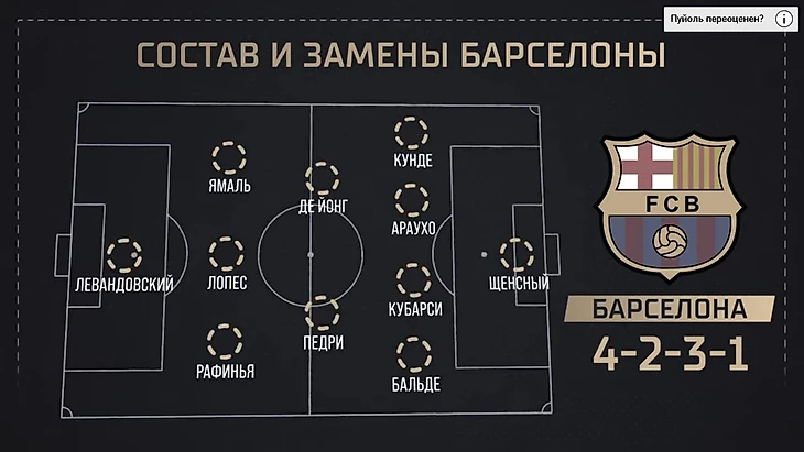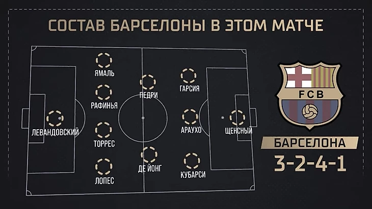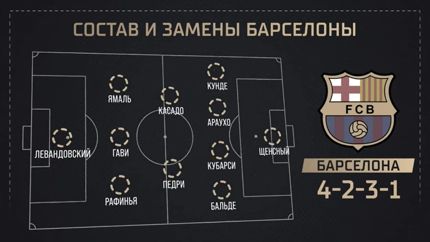 Флик снимает левого защитника Бальде и выпускает атакующего Торреса. Теперь Рафинья и Лопес действуют в полуфлангах, а ширину создают Торрес и Ямаль.