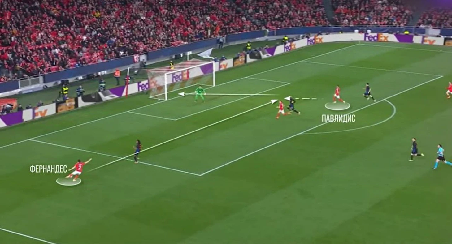 Но в это же время Бенфика проводит свои замены и перестраивается на схему в 5 защитников, чтобы удерживать счет. К тому моменту Бенфика вела в счёте 4:2.