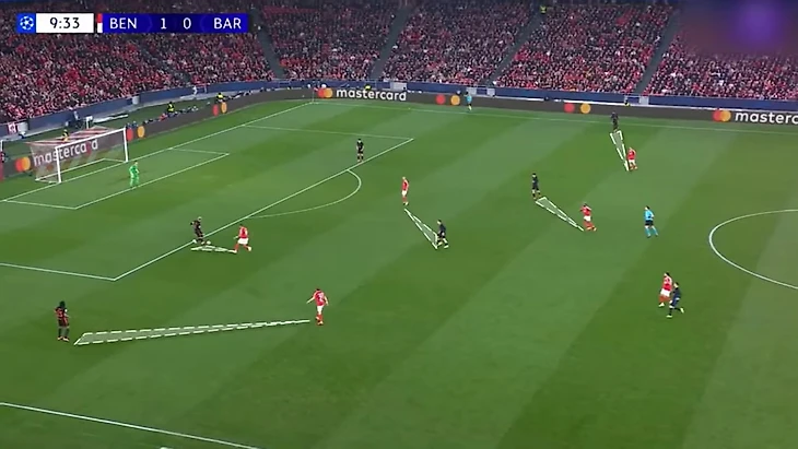 90-ая минута. Счет 4:4 и в целом уже добыт хороший результат. Вспоминая Барсу до Флика, можно было забыть про слово “камбэк”, а тут и Бенфика иногда огрызается, последние минуты матча.