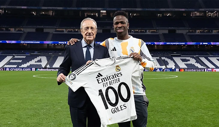 Прошедшей ночью Винисиус Жуниор сделал еще один большой шаг к тому, чтобы навечно вписать свое имя в историю «Реала» золотыми буквами – бразилец стал всего лишь 23-м игроком за время (уже почти 123 года) существования клуба, которому удалось достичь отметки в 100 забитых мячей.