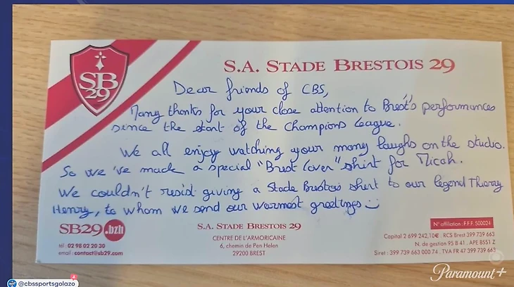 Прошло два месяца и Ричардса все-таки догнали его же приколы. Во время последнего эфира CBS Sports Golazo Кейт Абдо вручила ему подарок, передав послание от «Бреста».
