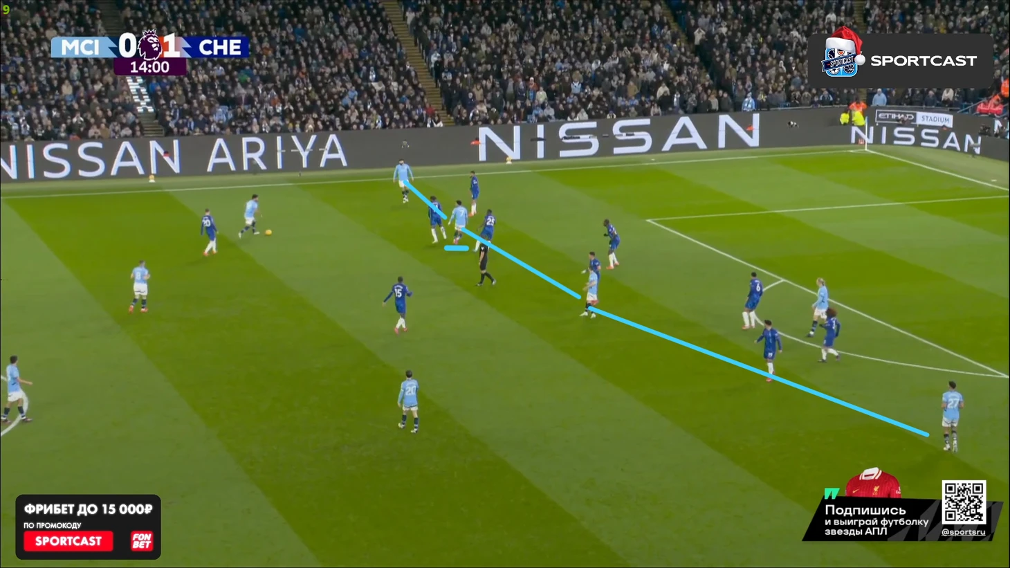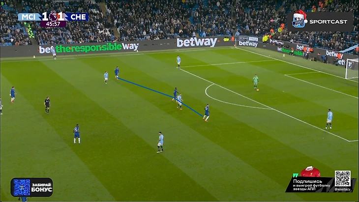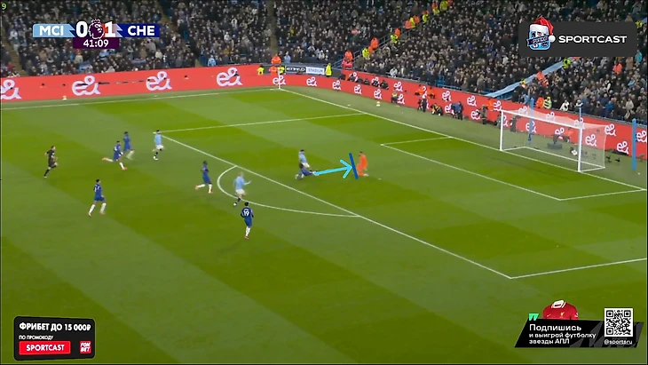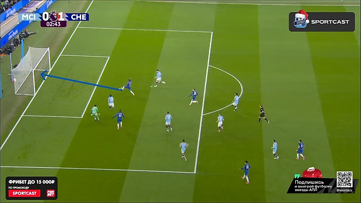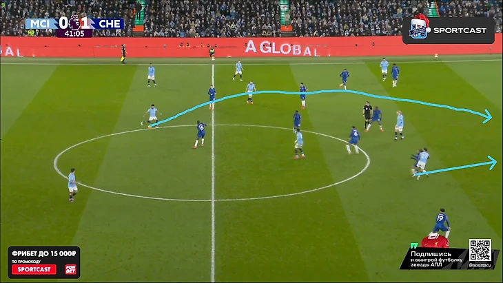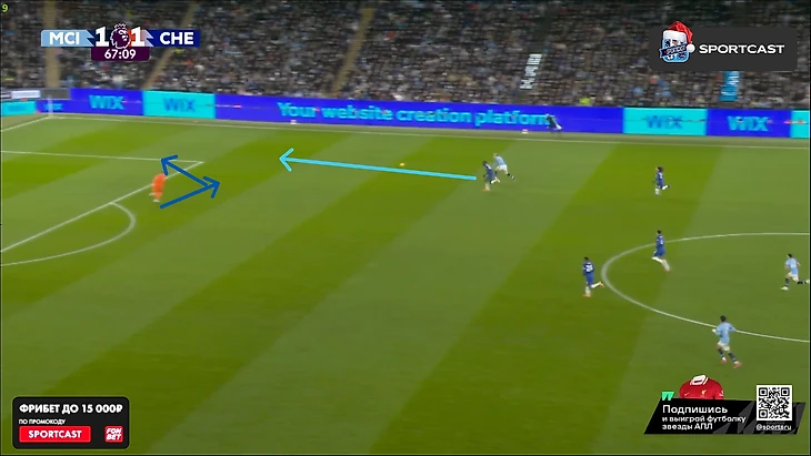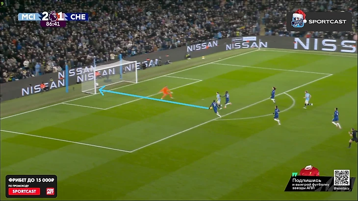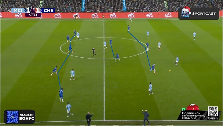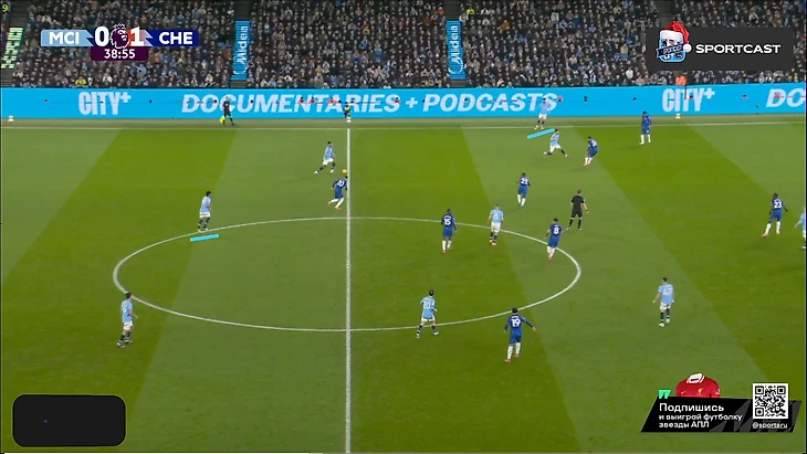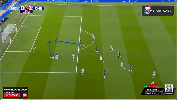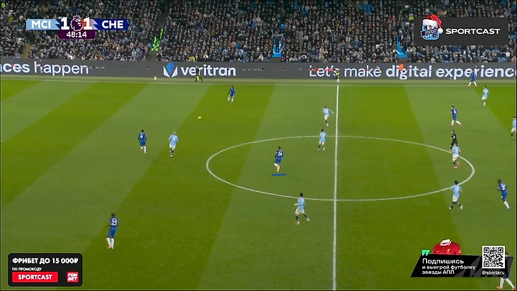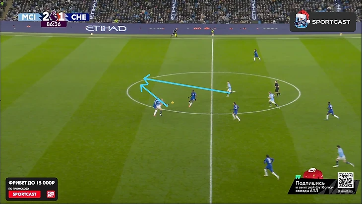 А вот после того, как час игры миновал, таки какие-то изменения в командах начали проявляться: у «Челси» на 61-й вышел Кристофер Нкунку и получил неприлично много времени по меркам Марески (обычно француз получает не более 10 минут при Энцо), а вот у «Сити» произошли более глобальные изменения именно в билд-апе – подопечные Пепа куда чаще стали прибегать к лонгболлам.