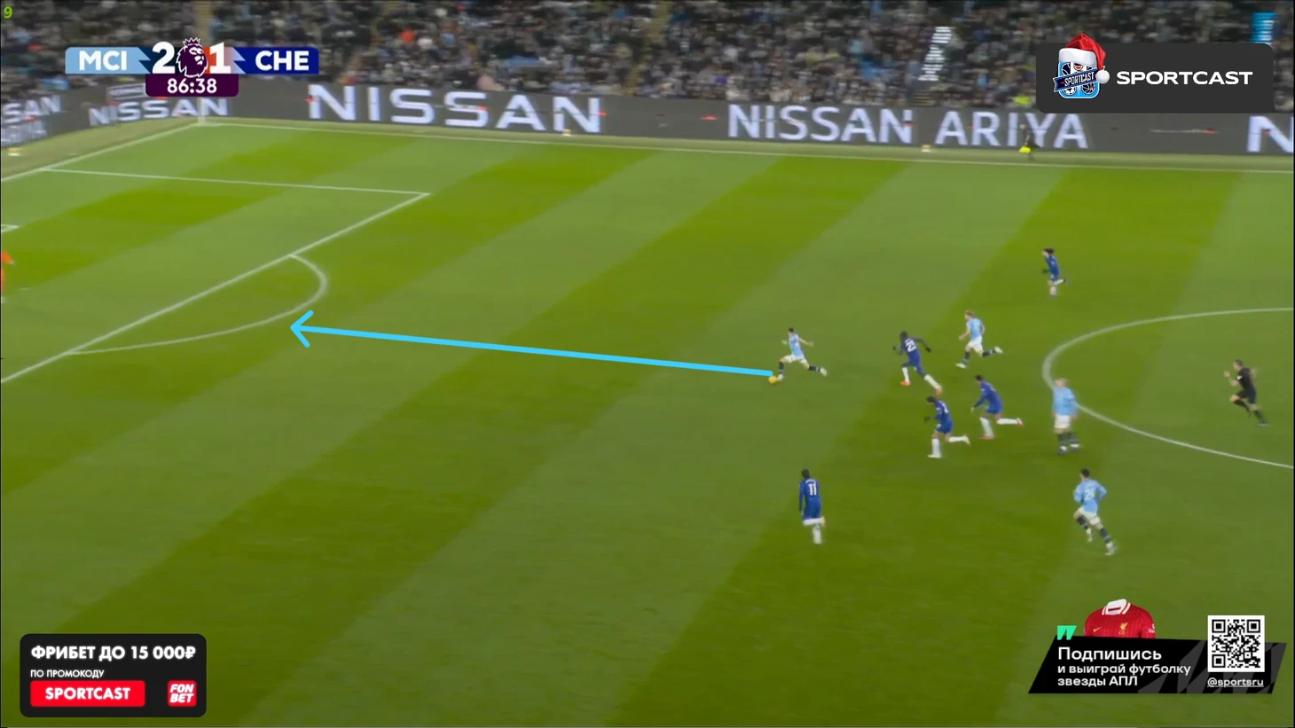 Просто фантастика! Тут Палмер опускается на позицию правого защитника в поисках мяча, в то время, как семеро игроков «горожан» находятся на чужой половине, и это уже на исходе 80-й минуты!