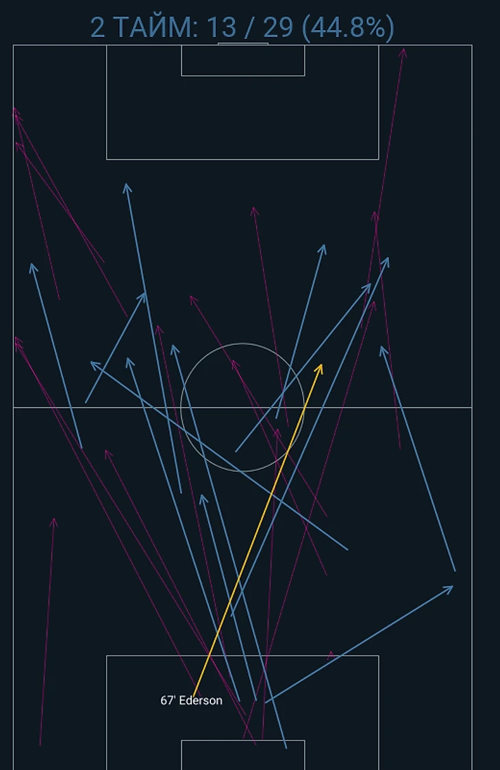 У «горожан» лишь за вторую половину 29 длинных передач, вот их карта: