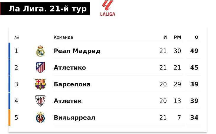 Неожиданно в чемпионской гонке оказался «Атлетик», но «Реал» вряд ли переживает – явные фавориты сезона прямо сейчас.