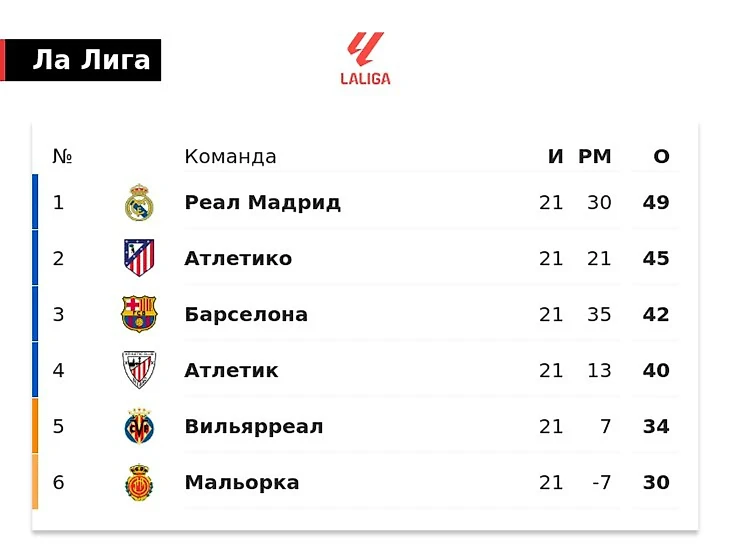 «Барселона» приблизилась к «Атлетико» (теперь минус три) и осталась при своих с «Реалом» (минус семь).