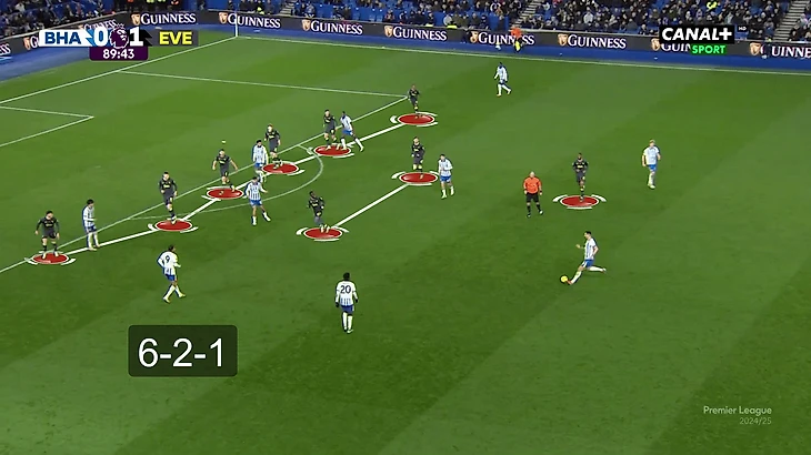 И да, вы не ошиблись: схема – и правда 6-2-1. Мойес не смог заменить травмированного опорника Мангаля, из-за чего команда доигрывала встречу вдесятером. Все равно справились. «Брайтон» создал моментов на 0,64 xG – антирекорд сезона.