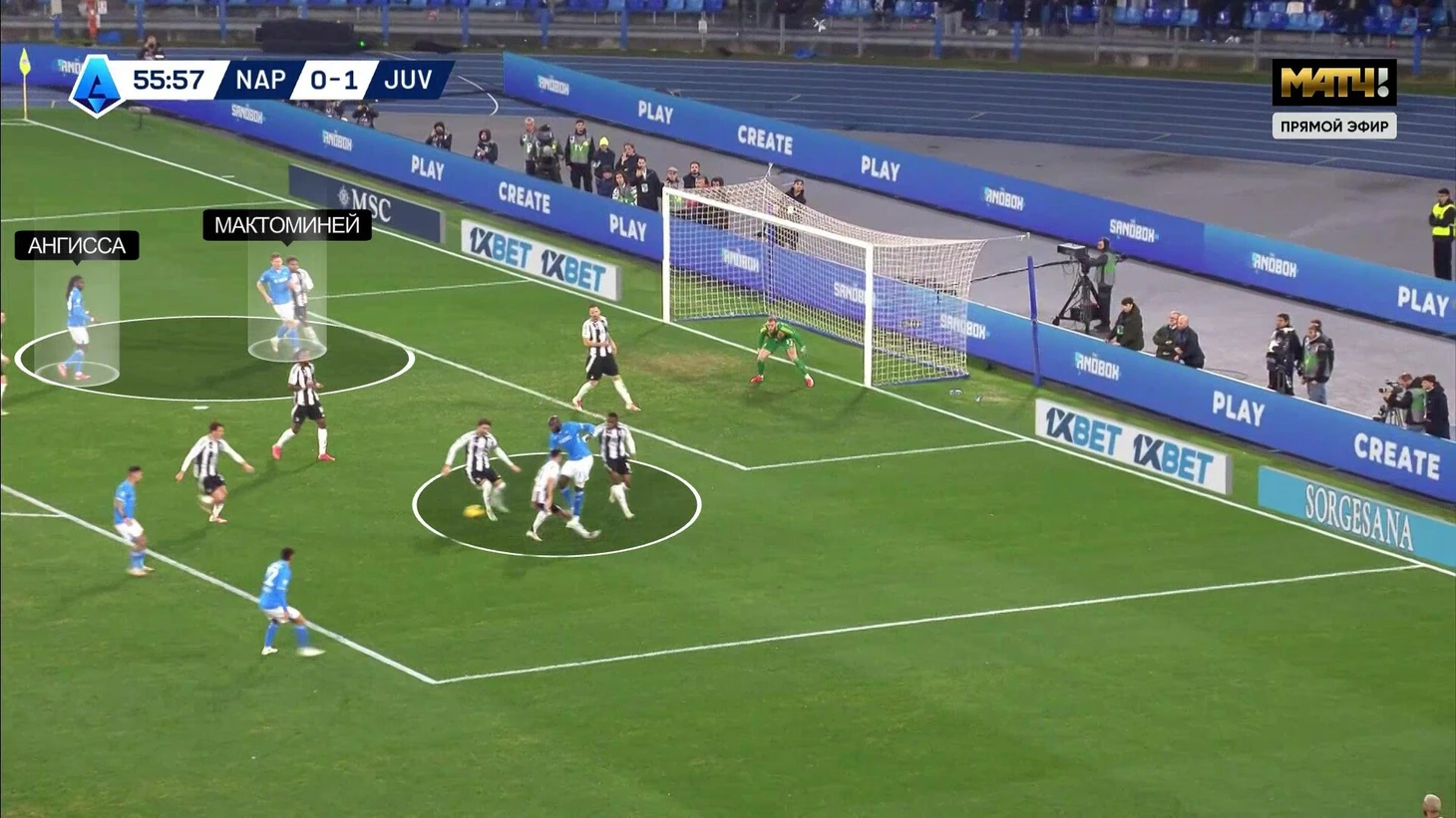 В первом тайме Наполи ни разу не пробил в створ. Политано умудрился с пары метров запульнуть в космос - это единственный опасный момент у ворот Ди Грегорио. И в принципе единственный момент первого тайма для неаполитанцев. Ювентус же действовал на порядок грамотнее и острее: в центре поля Тюрам и Кооп подбирали все, что шло в сторону их ворот, фланги забивали как Нереса, так и Ангисса. Момент с голом Муани случился именно благодаря давлению: отскок произошел благодаря тому, что Коопмейнерс в очередной раз отрабатывал без мяча в прессинге, не позволяя выбить круглого из штрафной. Также важно вспомнить момент Йылдыза - провал в обороне случился именно по вине тренера, который оказался не готов к таким скоростным перехватам. Тюрам подавал в пустую зону, где секунд 5 в одиночестве бегал Йылдыз. Как он там не забил - вопрос к Мерету и вселенной....