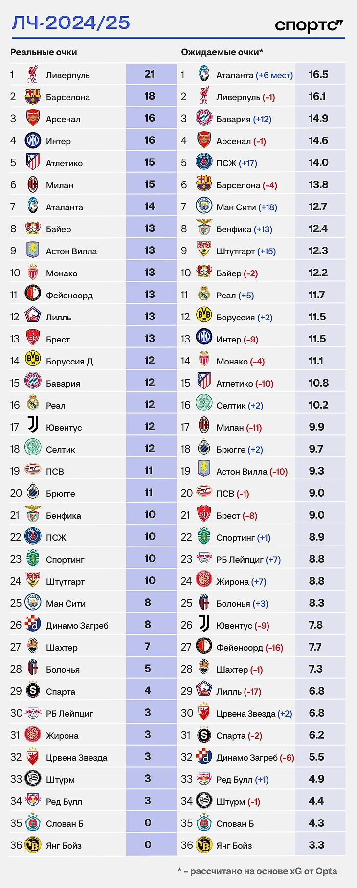 Оптика xG применима и к сезонам – нужно лишь перевести ожидаемые голы в очки. Но усложнив подход: за победу 1,5-1,4 по xG дается не 3 очка, а с поправкой на разницу.