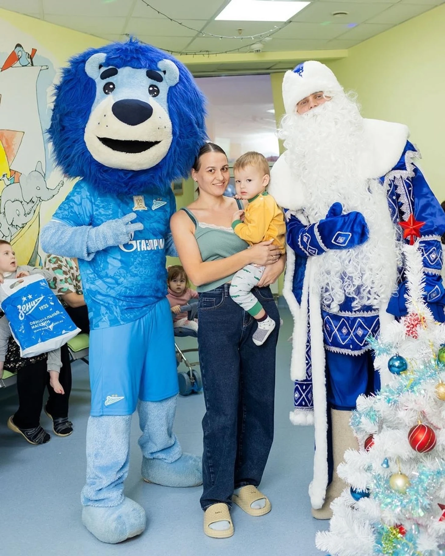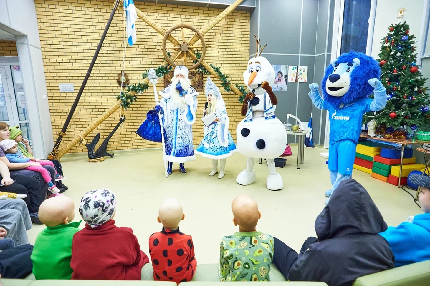 18 декабря делегация футбольного клуба «Зенит» во главе с Синегривым львом и Дедом Морозом поздравили сотню пациентов ФГБУ «НМИЦ им. В. А. Алмазова» с наступающим Новым годом.