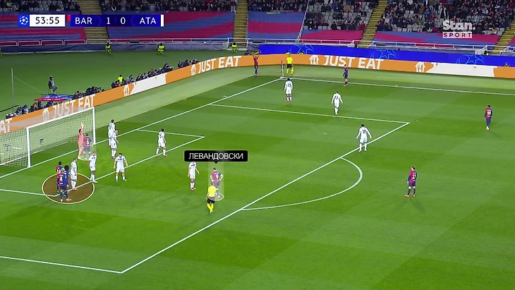 «Барса» располагалась при угловых по формуле Жовера: блокировка траектории вратаря + группа набегающих на дальней штанге + Левандовски в роли Габриэла: