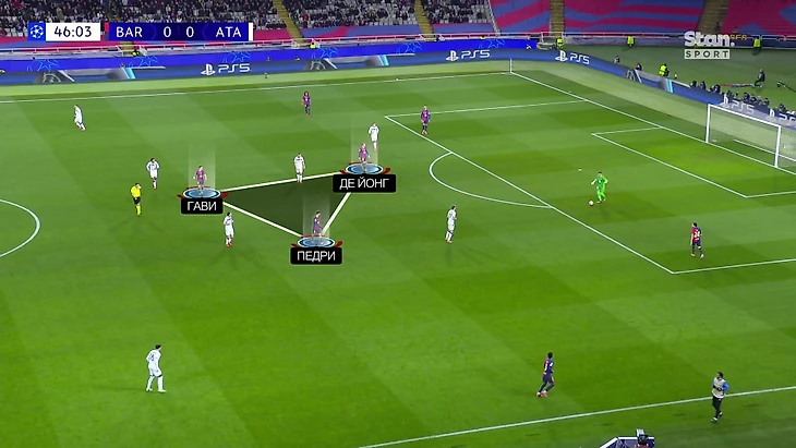 Учитывая уровень игры под давлением у Френки, Гави и Педри, «Барса» не теряла мяч. Продвигая его, получала выгодные соотношения на чужой половине, где открывалась возможность для атак на пространстве.