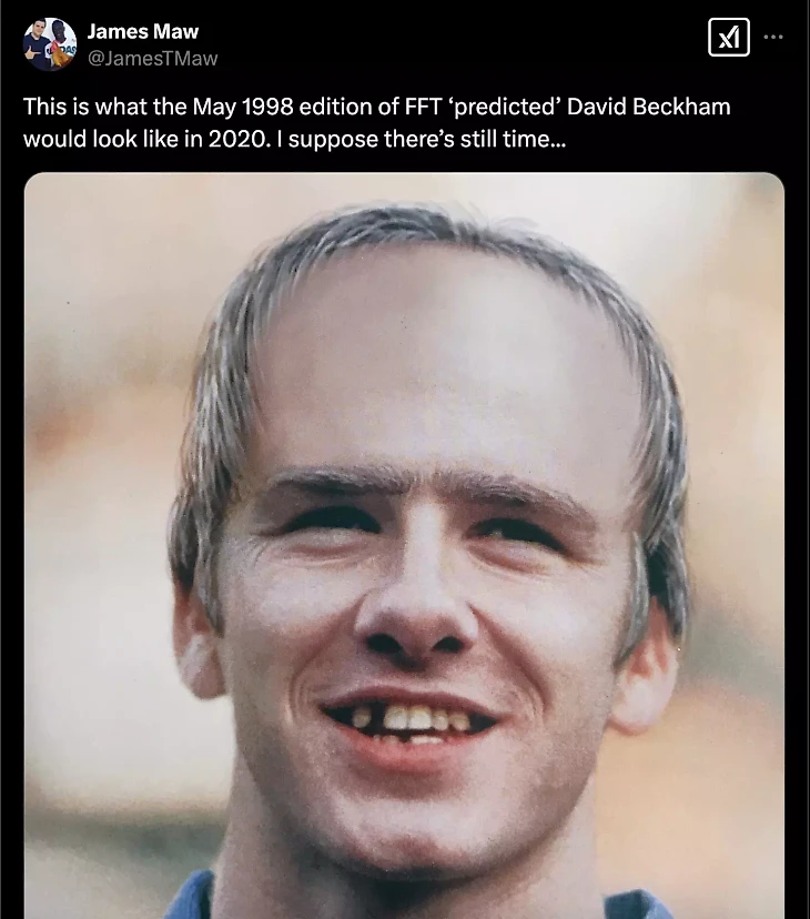 😲 В 1998-м в Англии предсказали внешность 45-летнего Бекхэма. Посмотрите