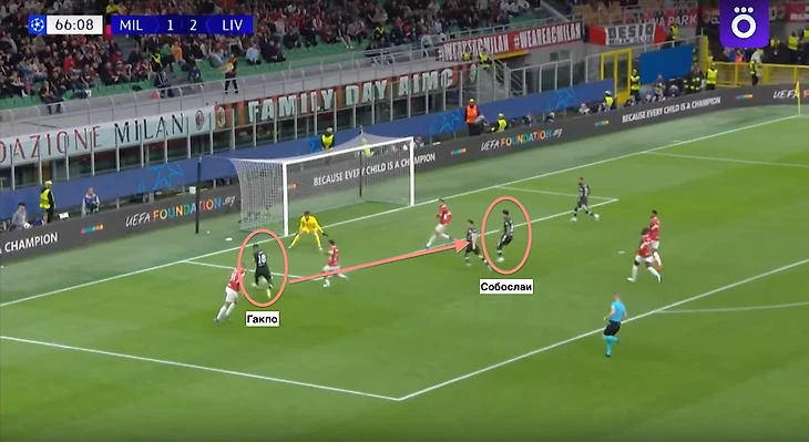 Таким образом голевая передача от Гакпо на Собослаи случилась уже при счете 1:2 в пользу «Ливерпуля». На 67 минуте «красные» перешли в контратаку на ворота «Милана». Коди зашел с мячом в штрафную, при этом сумел его сохранить в борьбе с оппонентом, и прострелил в центр на Доминика. Первая победа «Ливерпуля» в этом розыгрыше ЛЧ.