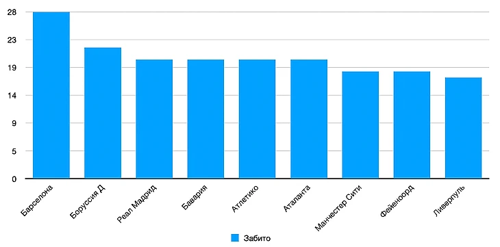 По забитым голам «Ливерпуль» (17) занимает девятое место, по количеству уступив бывшей команде Арне Слота «Фейеноорду» (18), «Манчестер Сити» (18), «Аталанте» (20), «Атлетико Мадрид» (20), «Баварии» (20), «Реал Мадрид» (20), «Боруссии Дортмунд» (22) и «Барселоне» (28). Из представленных, помимо «Ливерпуля», команд только два коллектива прошли в 1/8, причем оба испанских: «Барселона» и «Атлетико Мадрид».