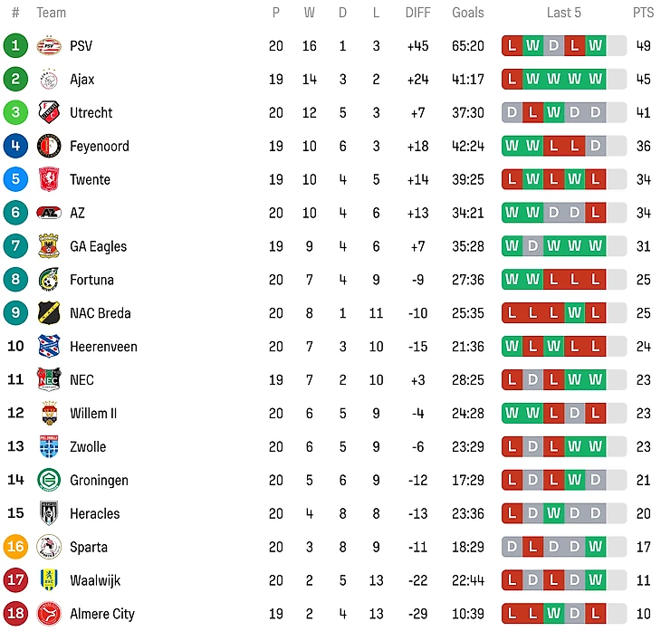 «Гронинген» в прошлом туре обыграл «Херенвен». Голы даются с большим трудом. Хуже только «Алмере» со смешными 10 забитыми.
