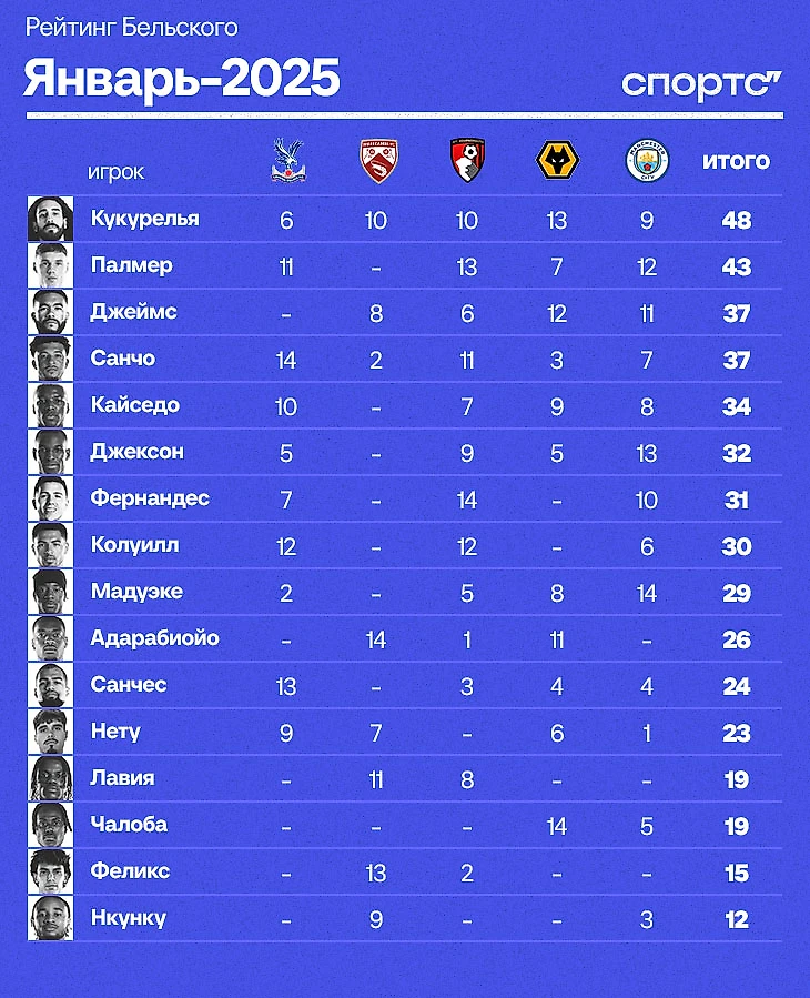 Джейдон Санчо несколько раз сверкнул в январе, как и Нони Мадуэке (хотя 14 баллов за матч с «Манчестер Сити» очень большой аванс из-за провала всей остальной команды). А вот Педру Нету совсем затих.