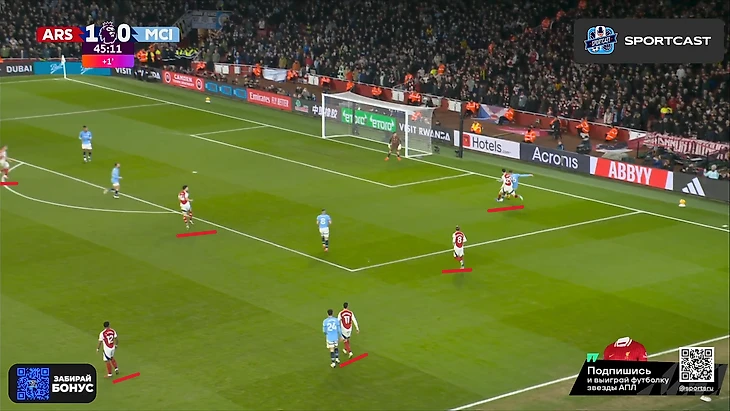 Однако даже в таком моменте, где «Сити» привез сам себе, без везения «канониров» не обошлось, и удар Томаса подправил просто идеальный рикошет от Стоунза, который стал настолько неожиданным по траектории, что Ортега даже не прыгнул за ударом.