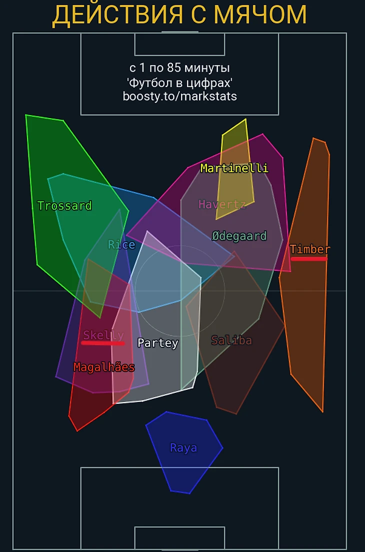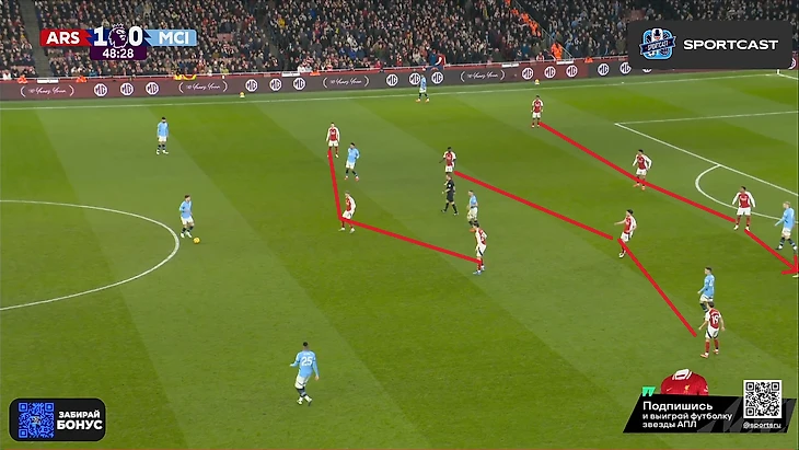 Каждая контратака отныне несла в себе неслабую угрозу, но они до самого финального свистка оставались не единственным оружием подопечных Артеты, ведь про прессинг они не забывали на протяжении всей второй половины и были достаточно стабильны в этом компоненте: