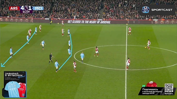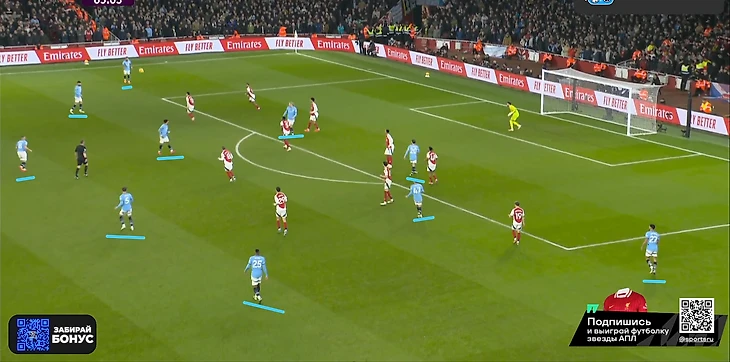 И произошло это настолько быстро, что стартовые планы команд, по большому счету, так и остались загадкой, хотя кое-какое предположение по первоначальному плану гостей у меня появилось даже по этим первым двум минутам - «Сити» хотел начать максимально агрессивно, как минимум в игре без мяча, ведь на первом же ауте соперника на своей половине «горожане пошли в очень смелый прессинг: