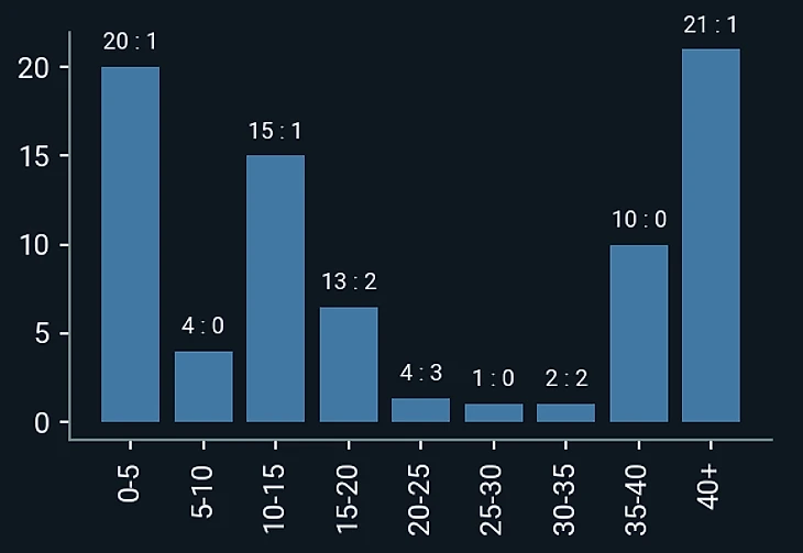 Это же показывает и PPDA хозяев в первой половине, на графике которого видно как прибавил «Арсенал» в этом компоненте аккурат после 20-й минуты: