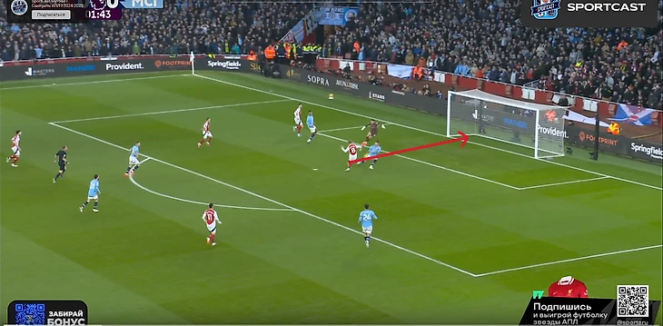 Уже в этот момент оборона «горожан» кажется какой-то плюшевой. Ну вот чего хотел добиться Стоунз как и Аканжи, бесконечным плассированием назад, если удар они в итоге не заблокировали? Ну а Ортега, в очередной раз, просто не спас, хотя мяч задел и переправил его в штангу, но немного не хватило.