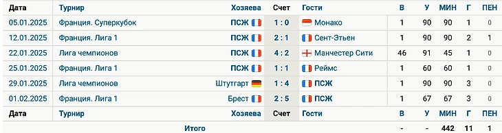Показывал ли хоть один сезон целый в карьере на таком уровне в карьере - точно нет. Да, пожалуй, даже полсезона не выдавал. Против Ливерпуля/Барселоны посмотрим на него... Если в ЛЧ Брест настолько же хуже ПСЖ как в Лиге1.