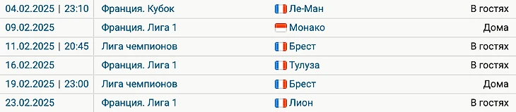 А давайте посмотрим календарь «ПСЖ» на февраль: